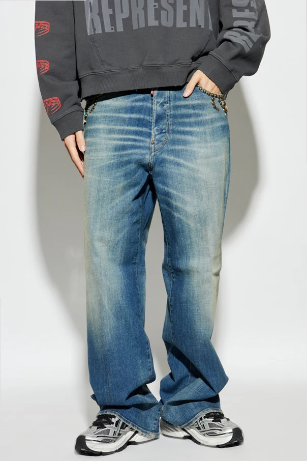 Distinguished by an artful fusion of American glamour and Italian sophistication, these loose-fit jeans from Dsquared2 exude contemporary elegance. Crafted from classic denim with a bold, washed effect, they feature wide legs and a relaxed silhouette that offers freedom of movement, thanks to a meticulously chosen stretch-enhanced fabric blend.