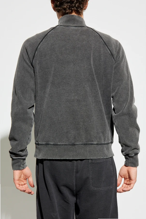Exuding sophisticated urban allure, the S-WAFY-ZIP-RAG sweatshirt by Diesel elevates modern menswear with understated distinction. Rendered in a refined shade of gray, this zip-up essential features a classic silhouette accentuated by raglan sleeves, ensuring exceptional comfort and a subtle athletic spirit.