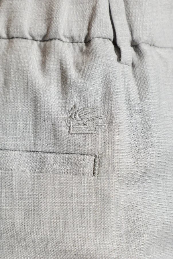 Immerse yourself in refined sophistication with these tailored trousers from Etro , defined by their classic slim-leg silhouette and timeless crease detail. Presented in a luminous light gray hue, these pants embody understated luxury, making them an effortless addition to any discerning wardrobe.