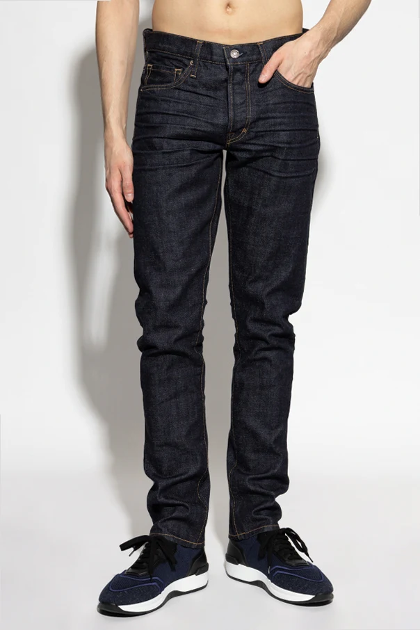 Experience elevated sophistication in these skinny fit jeans by Tom Ford, crafted from premium raw denim in a deep, refined indigo hue. Impeccably tailored for a close, modern silhouette, these jeans exemplify luxurious minimalism with a smooth, uninterrupted finish —free from distressing or superfluous embellishments.