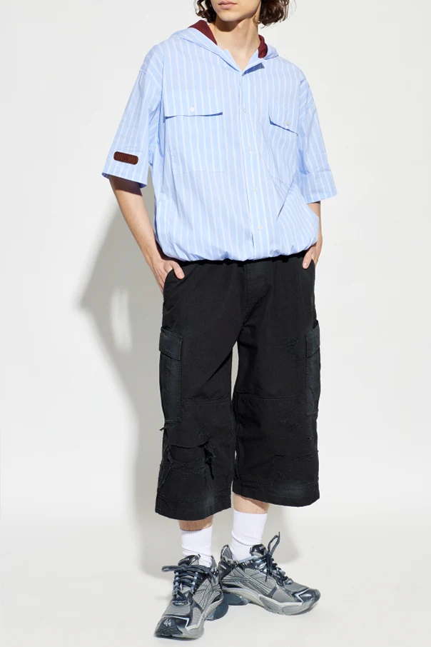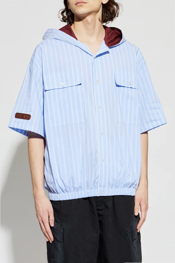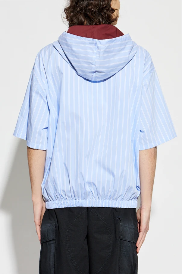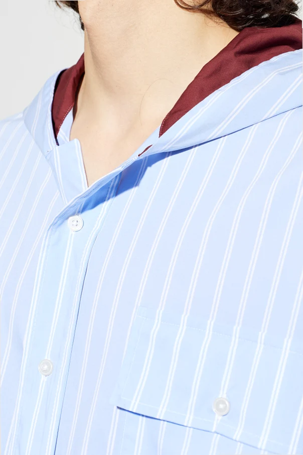 Imbued with a sophisticated yet contemporary aesthetic, this oversized turtleneck shirt by PDF showcases refined casualwear at its finest. Crafted from an exquisite blend of cotton, polyamide, and elastane, the fabric features a light, breathable structure, delivering both elegance and supreme comfort. The striking pattern of thin white vertical stripes set against a rich blue background enhances its visual appeal, while the relaxed silhouette, dropped shoulders, and gently tapered waistband with concealed elastic lend a sport-casual finesse.