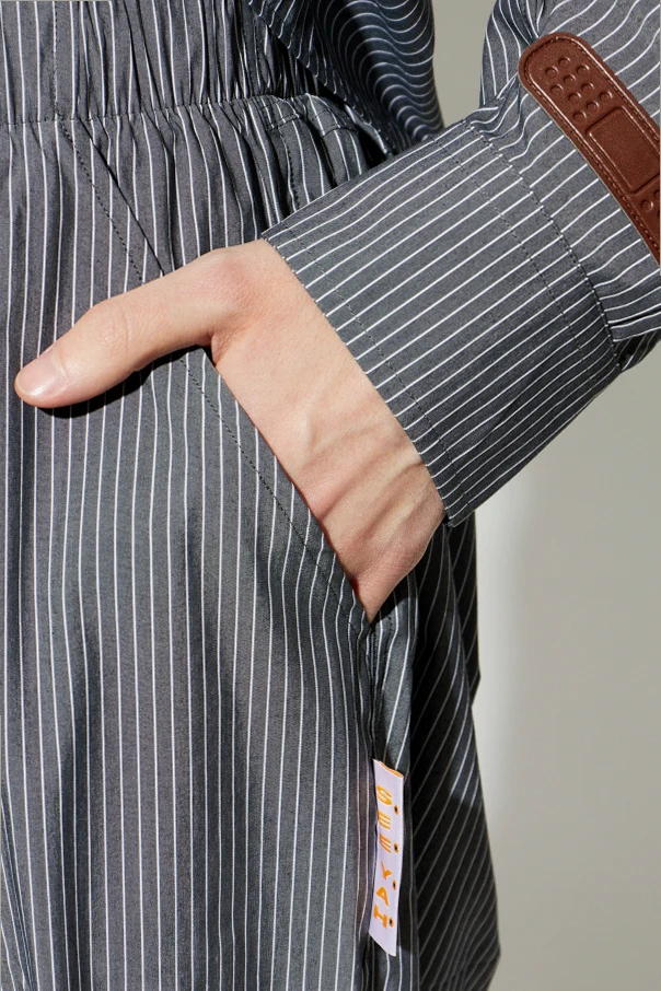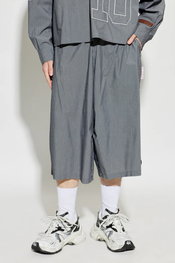 The silhouette is intentionally loose and generously cut, featuring elongated, straight legs that fall just below the knees, while a discreet elastic waistband ensures effortless ease of wear. Discreet side pockets further enhance the design, and a subtle side label affirms its designer provenance. Perfect for those who seek understated luxury with a contemporary twist.