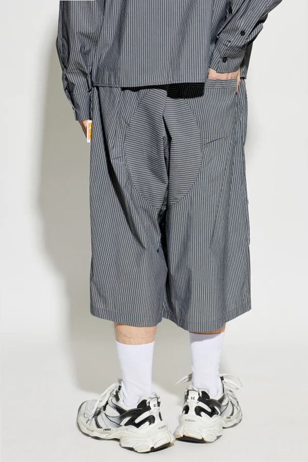 Discover the refined sophistication of these gray striped bermuda shorts by PDF. Meticulously crafted from a superior blend of cotton, polyamide, and elastane, this lightweight fabric features a subtle sheen, ensuring both comfort and a cultured aesthetic. The pronounced white vertical stripes contrast elegantly with the gray background, imparting a distinctive visual allure and a thoroughly modern sensibility.