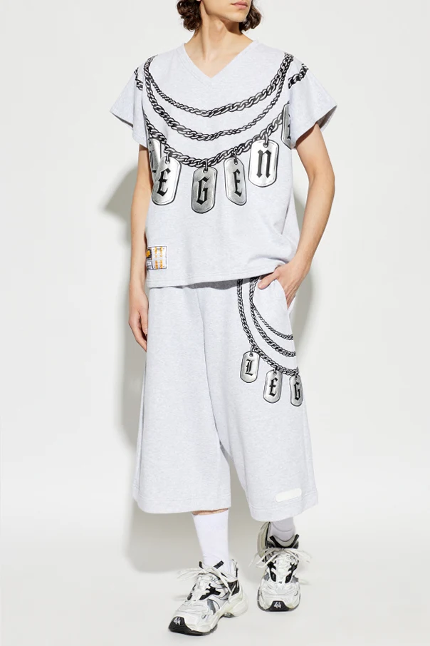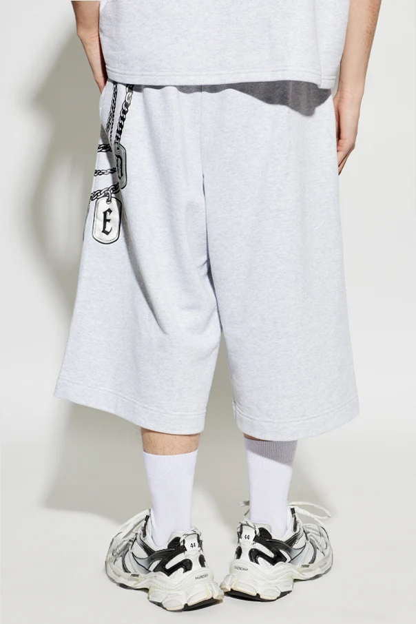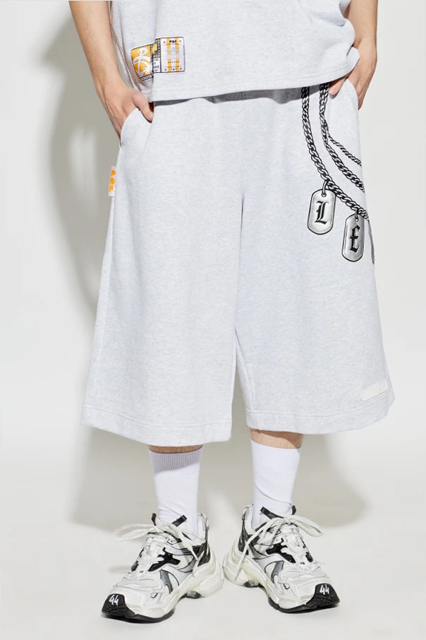 Experience urban sophistication with these printed French terry shorts in refined black. Expertly crafted from luxuriously soft cotton, these bermuda-inspired shorts exude contemporary elegance and unparalleled comfort. Their wide, straight silhouette falls just below the knee, offering effortless mobility and a distinctive streetwear aesthetic.