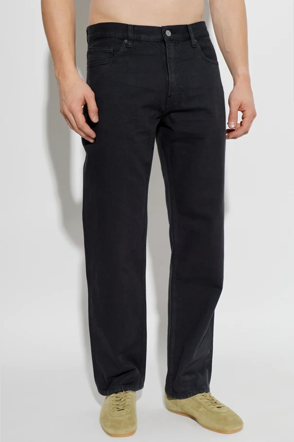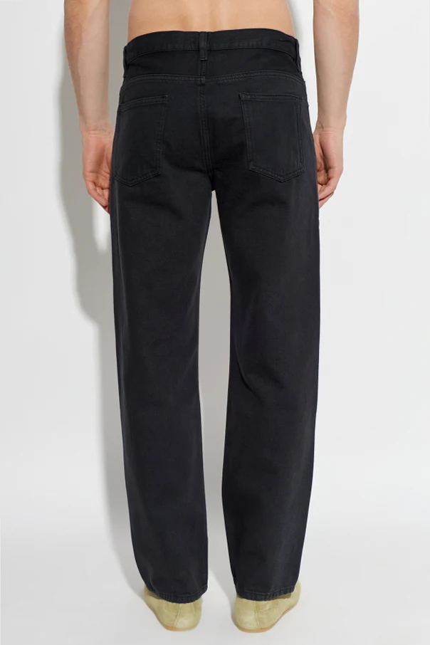 Designed with an impeccably straight silhouette and relaxed, non-restrictive legs, these jeans prioritize comfort without compromising on style. Meticulous detailing includes a classic five-pocket configuration, robust belt loops, and reinforced metal rivets, subtly elevating their durability and charm. A concealed button closure and minimalistic exterior finish this masterfully restrained design, allowing timeless tailoring to take center stage.