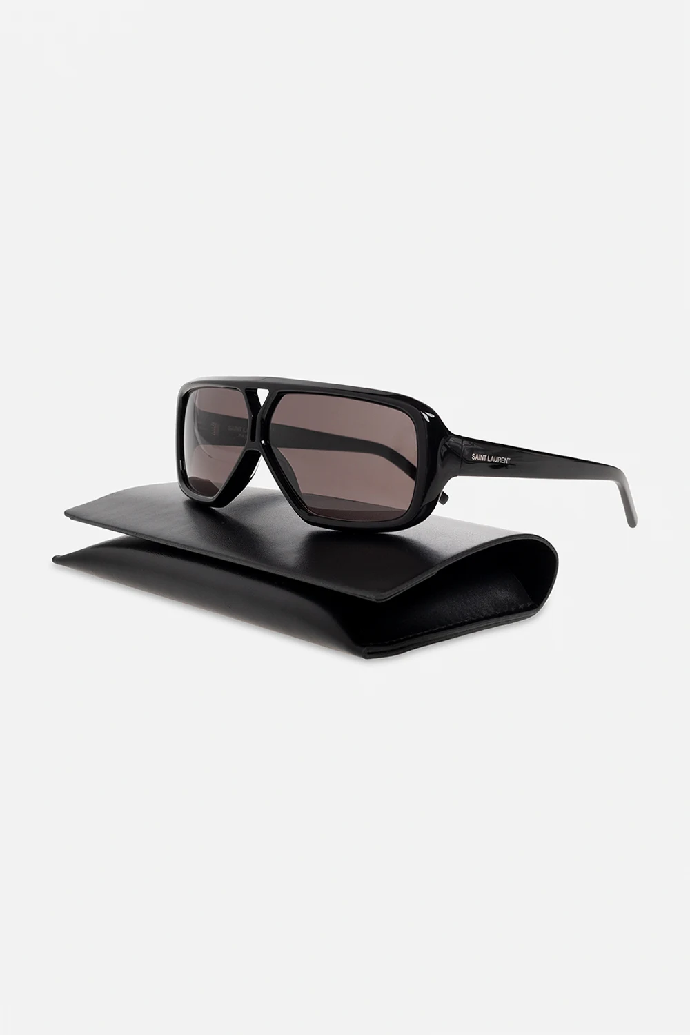 Black ‘SL 569 Y’ aviator sunglasses from Saint Laurent. Embellished with the brand's logo on the temples, this model features dark grey lenses with 100% UVA/UVB protection. Case included.