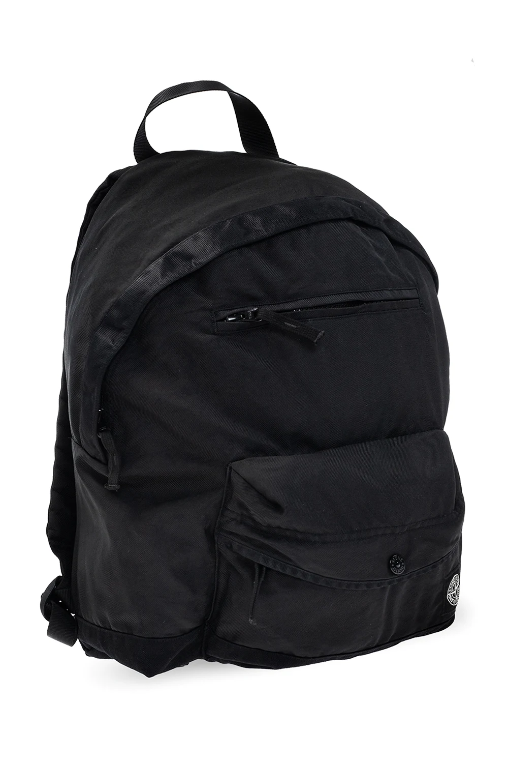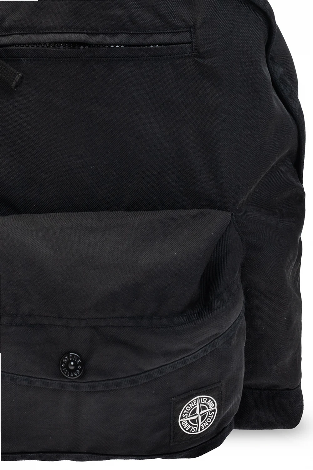 Black backpack from Stone Island Kids. Fastened with a zip, this garment features a patch, multiple pockets, half-round handle, adjustable shoulder straps and one internal compartment.
