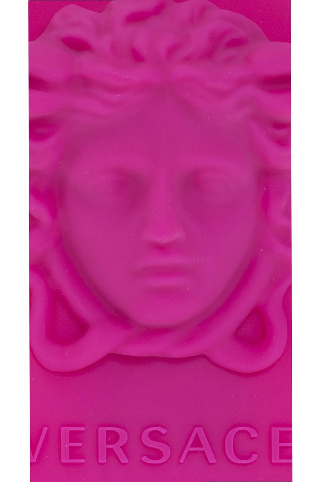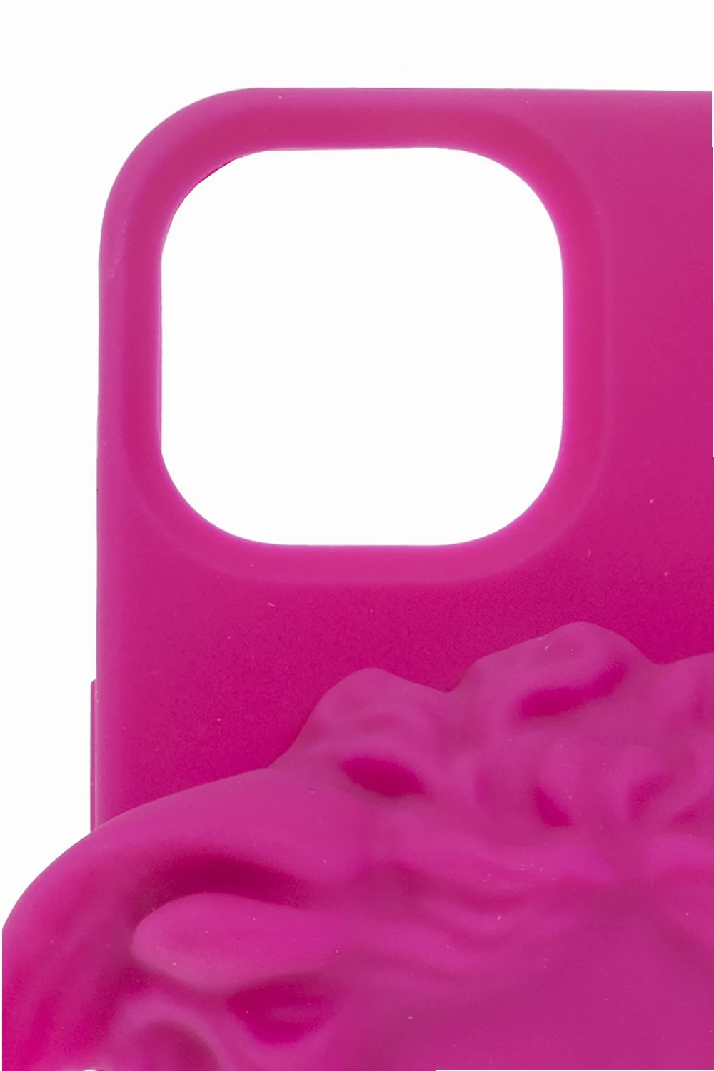 Pink iPhone 13 case from Versace. Made of silicone, this item features a logo detail and the iconic raised Medusa head.