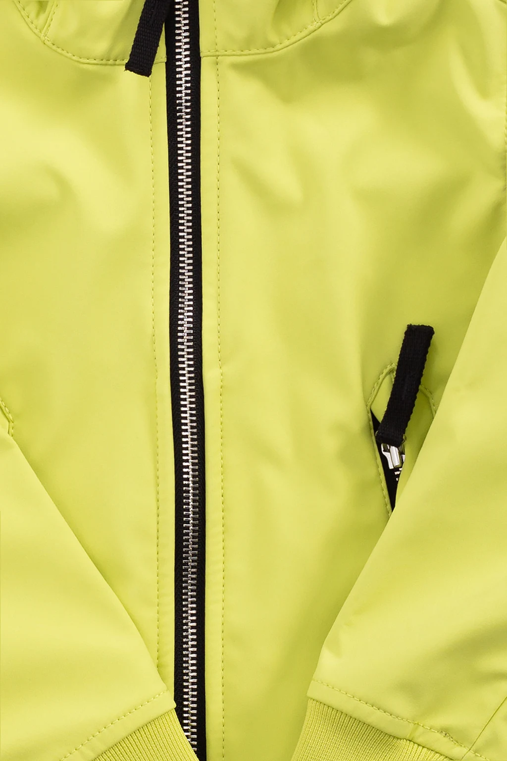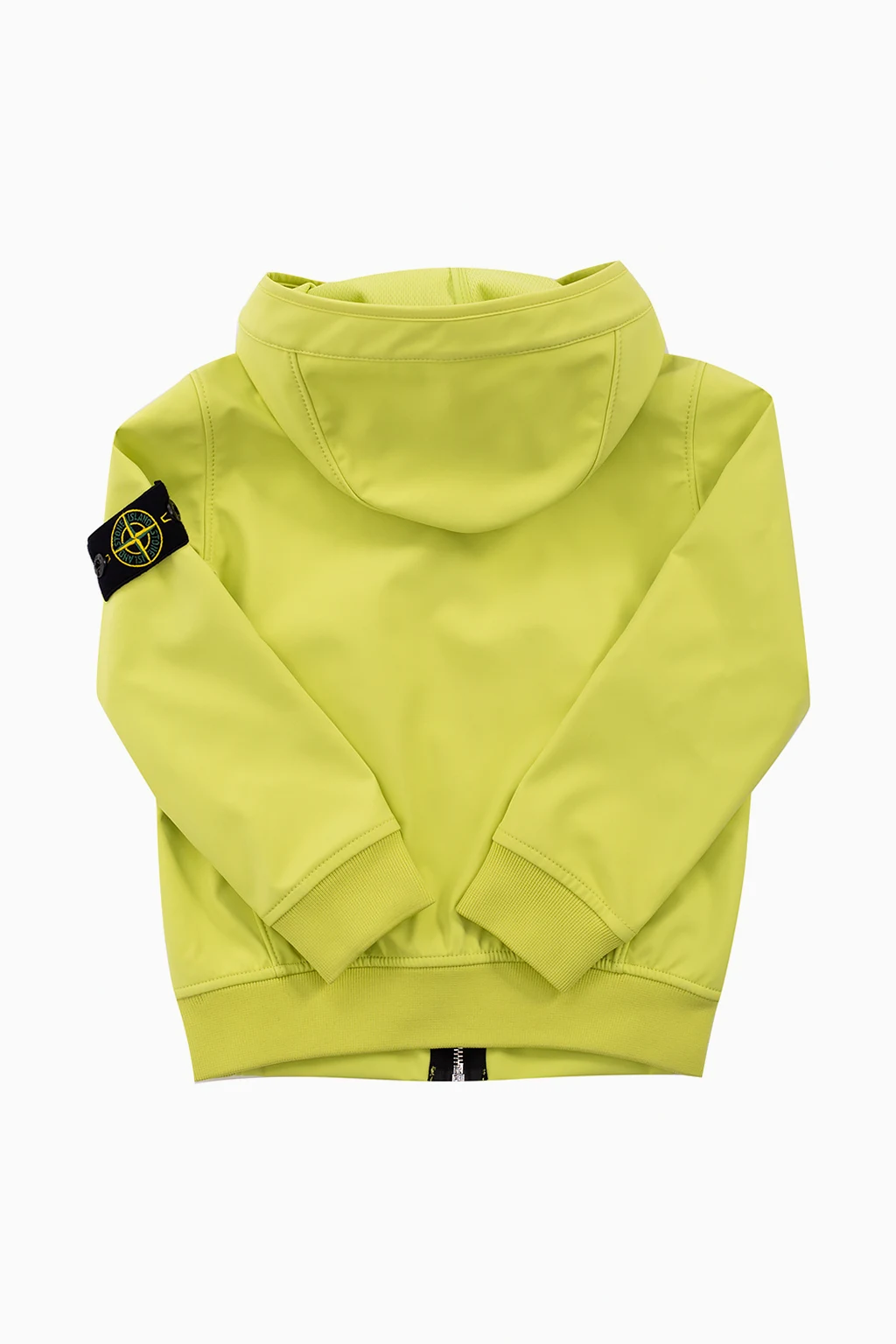 Neon green hooded jacket from Stone Island Kids. Flaunting a detachable logo patch on the sleeve, this item features a zip fastening, two zipped pockets and elasticated trims.