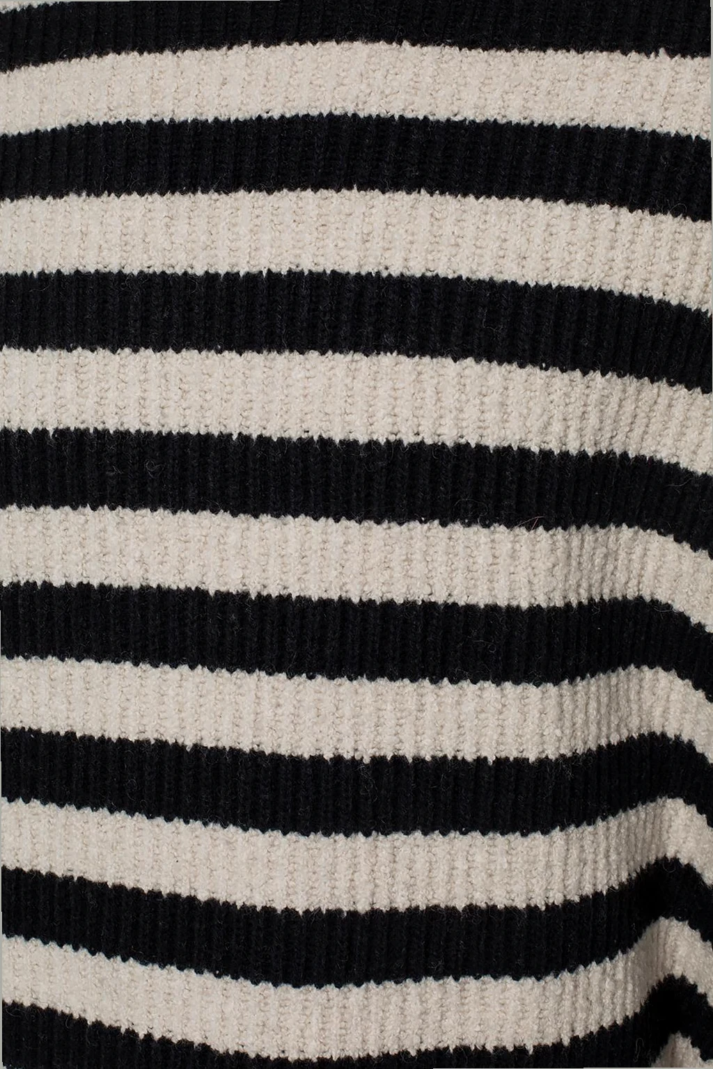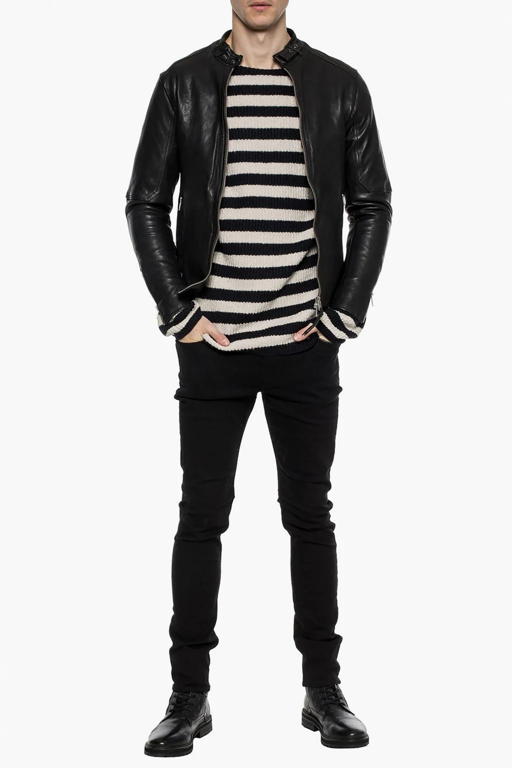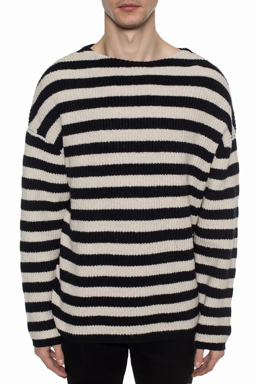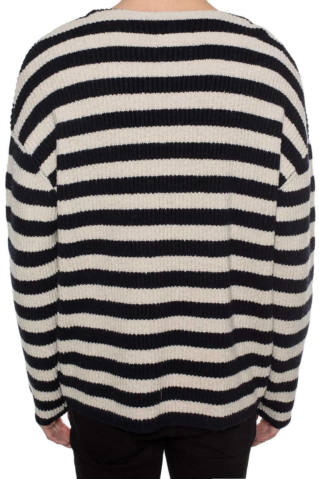 Black and beige 'Luca' crewneck sweater from AllSaints featuring stripe pattern, long sleeves and an all-over ribbed texture.