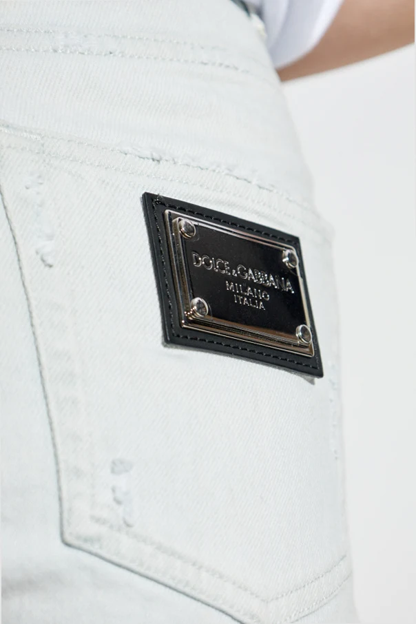 Introducing the Dolce & Gabbana Denim Shorts , an exquisite blend of casual allure and luxurious craftsmanship. Designed with a high waist and short frayed hems , these shorts epitomize effortless elegance. Crafted from premium light blue denim , they feature a subtle washed effect with artful distressed detailing on the front pockets. The material composition is a meticulous blend of cotton and elastane, ensuring both comfort and flexibility. The shorts are adorned with a metal plate bearing the distinguished Dolce & Gabbana logo on the back pocket, along with a practical front button and zipper closure . With a total of five pockets, these shorts provide ample functionality without compromising on style. Why Choose This Product? Exclusive Dolce & Gabbana branding for a touch of luxury. High waist and frayed hems for a modern, chic silhouette. Subtle washed effect with distressed detailing for a unique look. Comfortable and flexible denim blend of cotton and elastane. Functional design with five convenient pockets.