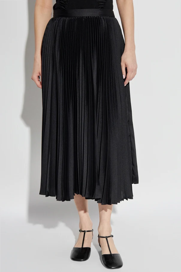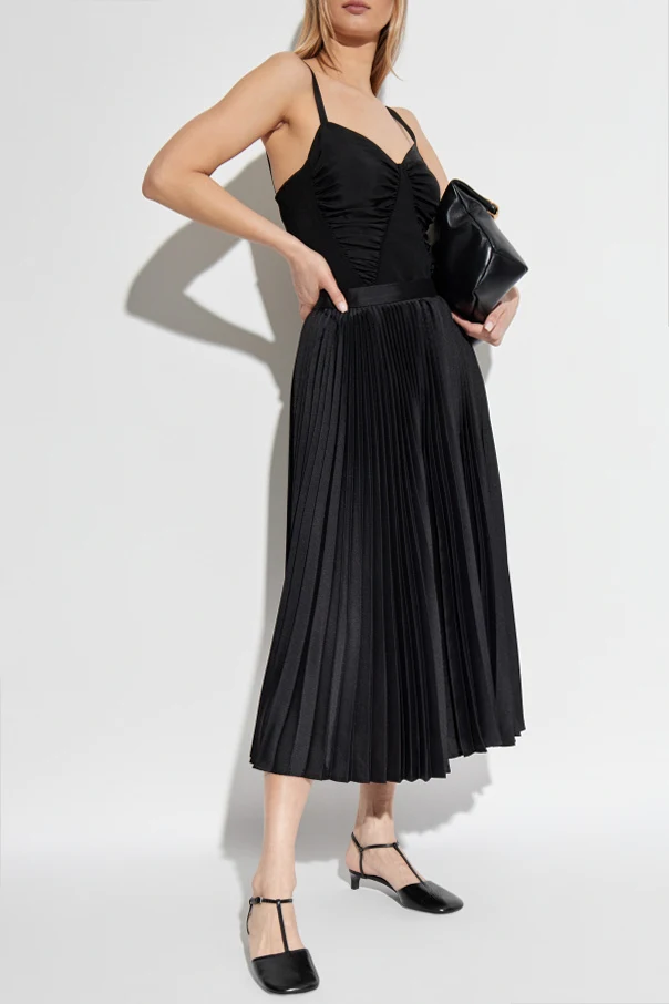 Introducing the Plisowana Skirt , an exquisite piece from the prestigious fashion house of JIL SANDER . This black, midi-length skirt is a true embodiment of refined elegance, crafted from luxurious polyester that shimmers with every movement. Featuring a classic, flared silhouette, the evenly distributed pleats bestow an air of sophistication and grace. The deep black hue provides a versatile elegance, seamlessly transitioning from formal occasions to more casual ensembles. Its minimalist design is devoid of any visible logos, underscoring its chic, understated style. The skirt fastens discreetly on the side with a zip, maintaining its streamlined aesthetic. The legacy of JIL SANDER, renowned for minimalist and androgynous designs, is impeccably upheld by current creative directors Luke and Lucie Meier, who honor the brand's heritage while infusing subtle innovations. Why Purchase This Product? Timeless elegance and versatile styling. Exquisite craftsmanship with a minimalist aesthetic. Luxurious polyester fabric with a sophisticated sheen.