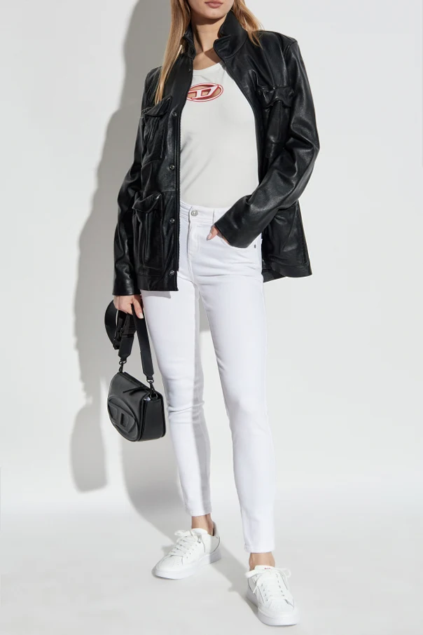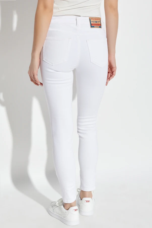 Introducing the 2017 SLANDY super skinny jeans by the illustrious fashion house Diesel . These exquisite jeans, cast in a pristine white hue, epitomize the intersection of elegance and modernity. Crafted from a sumptuous blend of cotton with elastane, they offer unparalleled comfort and seamless freedom of movement. The super skinny silhouette clings effortlessly to the body, accentuating the natural curves, while the narrow ankle-length legs bestow a sleek finish. These jeans are not only a statement of style but also a canvas of refined craftsmanship, featuring a discreet designer logo pocket at the front and a signature brand patch at the back waistband. Classic in construction yet contemporary in expression, they boast a traditional five-pocket design with a secure button and zip closure. These jeans are a testament to Diesel's unwavering commitment to quality and innovation under the creative direction of Glenn Mertens. Why Choose This Product? Impeccable super skinny fit that enhances your silhouette. Crafted from a soft, elastic fabric for optimal comfort. Elegant white color that complements any wardrobe. Signature designer details that elevate your style. Renowned Diesel quality and craftsmanship.