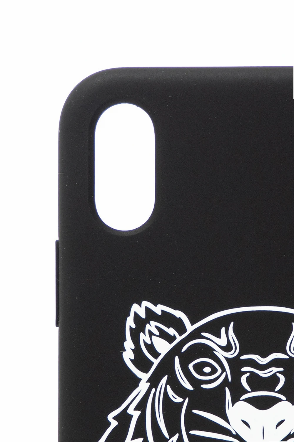 Black iPhone XS Max case from Kenzo printed with the label's iconic motif of tiger head accompanied by logo in white.