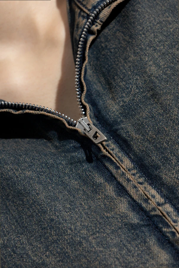 Wysokogatunkowy jeansowy materiał wyróżnia się wytrzymałością i charakterystycznym splotem, podczas gdy kołnierz typu stójka oraz zamek błyskawiczny na całej długości podkreślają nowoczesny ascetyzm całości. Prosta sylwetka i detale konstrukcyjne komponują się z minimalistycznym, gładkim wykończeniem.