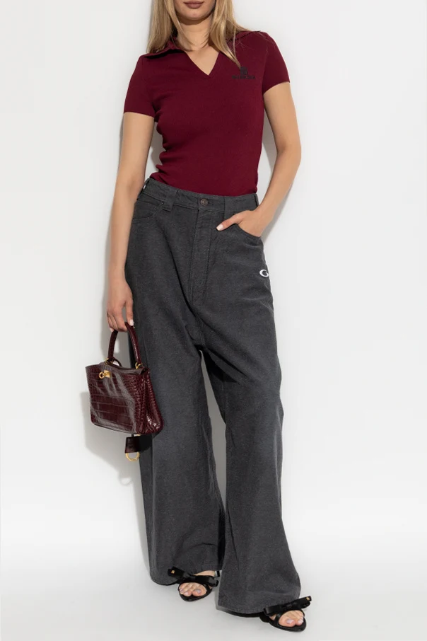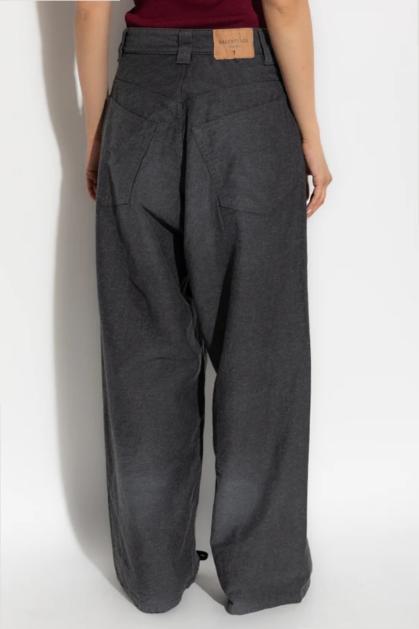 Eleganckie detale takie jak wyhaftowane logo marki „B” na przedniej kieszeni czy skórzana naszywka na pasie z tłoczonym napisem „BALENCIAGA JEANS” tworzą harmonijną całość z charakterystycznymi dużymi tylnymi kieszeniami . Ten projekt ucieleśnia mistrzostwo krawiectwa Balenciagi i łączy kunszt tradycji z awangardą współczesności.