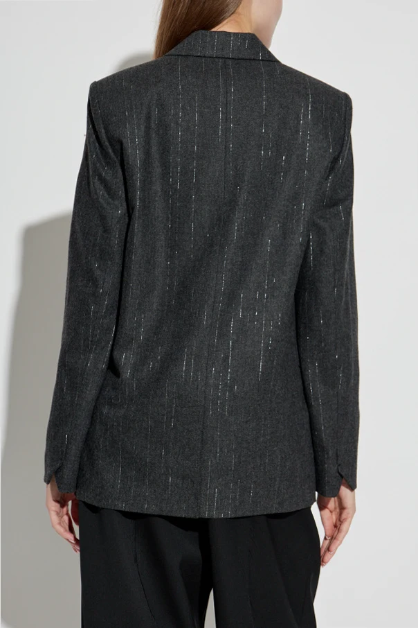 Marynarka Veska marki Zadig & Voltaire to przykład ponadczasowej elegancji, nawiązujący do dekadenckiego stylu z nutą artystycznej swobody. Utrzymana w głębokim odcieniu grafitowej szarości, zachwyca lekko połyskującą tkaniną, wzbogaconą subtelnym, pionowym wzorem nieregularnych pasków.