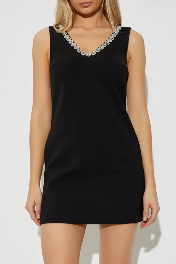 Sukienka z połyskującymi kryształami przy dekolcie to kwintesencja współczesnej elegancji w interpretacji marki Self-Portrait . Utrzymana w głębokiej czerni, intryguje prostotą fasonu mini bez rękawów, a szlachetnego wyrazu dodaje zjawiskowy dekolt w kształcie litery „V”.