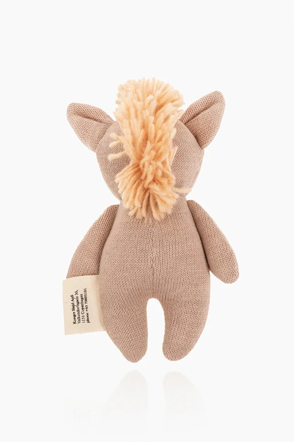 Pudroworóżowy mini jednorożec Konges Slojd. Wykonany w 100% z organicznej dzianiny bawełnianej z certyfikatem CE zgodnie z europejską normą EN-71-1. Mały dzwonek w środku doskonale stymuluje słuch dziecka.