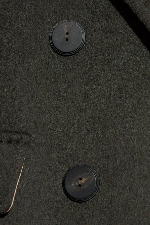 Wyjątkowo miękka, jednolita tkanina kaszmirowo-wełniana kusi matową, subtelną fakturą, gwarantując komfort nawet najbardziej wymagającym estetom. Dwurzędowe zapięcie na duże, czarne guziki o delikatnym zdobieniu dyskretnie podkreśla klasyczny charakter. Szeroki kołnierz z klapami oraz praktyczne, starannie ukryte dwie kieszenie dopełniają projektu o niebanalnej funkcjonalności.