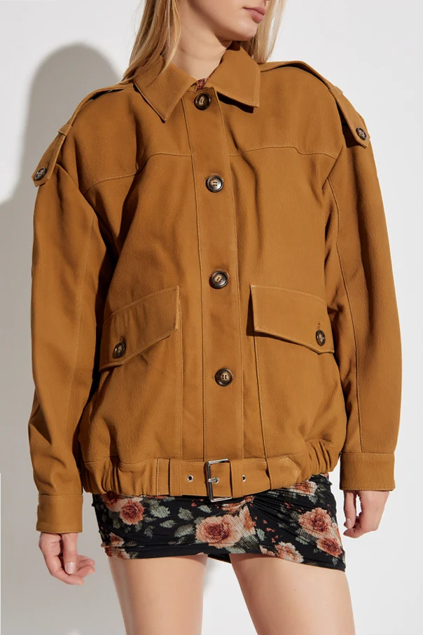 Kurtka skórzana Barrie marki Iro to wyjątkowy przykład paryskiego kunsztu i wyrafinowania. Wyróżnia ją brązowy , głęboki odcień, harmonijnie podkreślający naturalne piękno skóry jagnięcej o subtelnej, matowej fakturze z lekkim połyskiem. Luźny, oversizowy krój, lekko opuszczone ramiona oraz wyraziste, szerokie kieszenie z klapami i paskiem z przodu dodają jej odważnego, militarnego charakteru.
