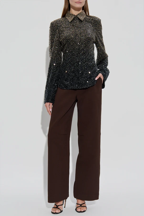Wyrazisty, brązowy odcień tkaniny wprowadza subtelny luksus i podkreśla ekskluzywność propozycji marki ROTATE.