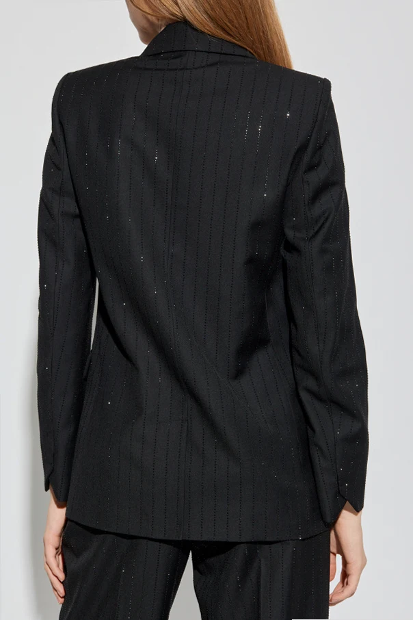 Marynarka „Valse” marki Zadig & Voltaire to wyrafinowany przykład nowoczesnej elegancji, która zachwyca dopracowaną formą i subtelnymi detalami. Czarny kolor, będący kwintesencją szyku, współgra z dyskretnym pionowym prążkiem oraz mikrobłyskiem widocznym w tkaninie, nadając całości prestiżowego charakteru.
