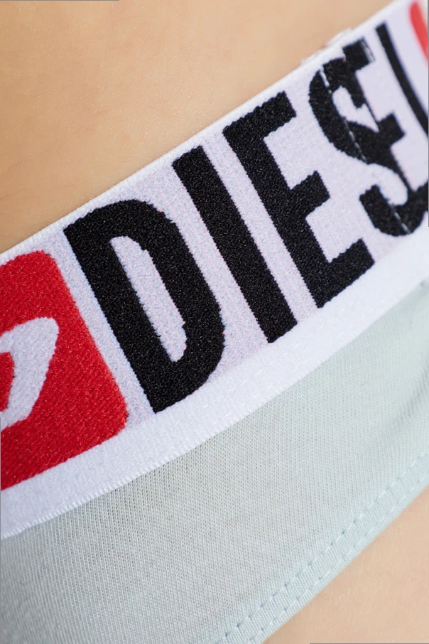 Szczególną uwagę przykuwa szeroki, biały pas ozdobiony powtarzającym się, kontrastowym logotypem „DIESEL” oraz charakterystycznym znakiem marki. Model pozbawiony fiszbin i wyściółki zapewnia naturalne podparcie oraz swobodę.