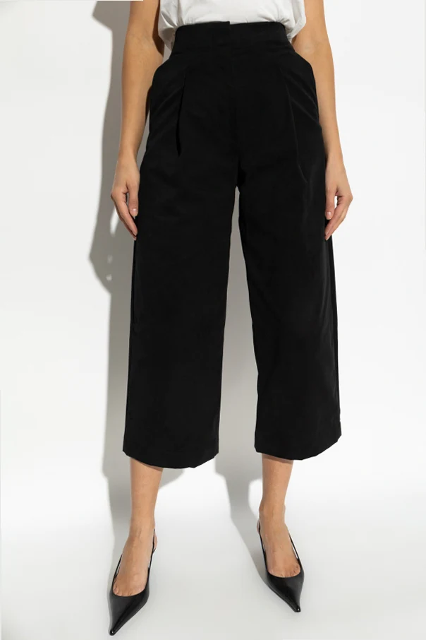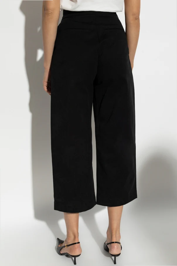 Spodnie ‘Dordoni’ marki Studio Nicholson stanowią kwintesencję wyrafinowanej prostoty i ponadczasowej elegancji. Model o szerokiej, prostej nogawce w długości 7/8 delikatnie odsłania łydkę, subtelnie wydłużając sylwetkę dzięki wysokiemu stanowi.