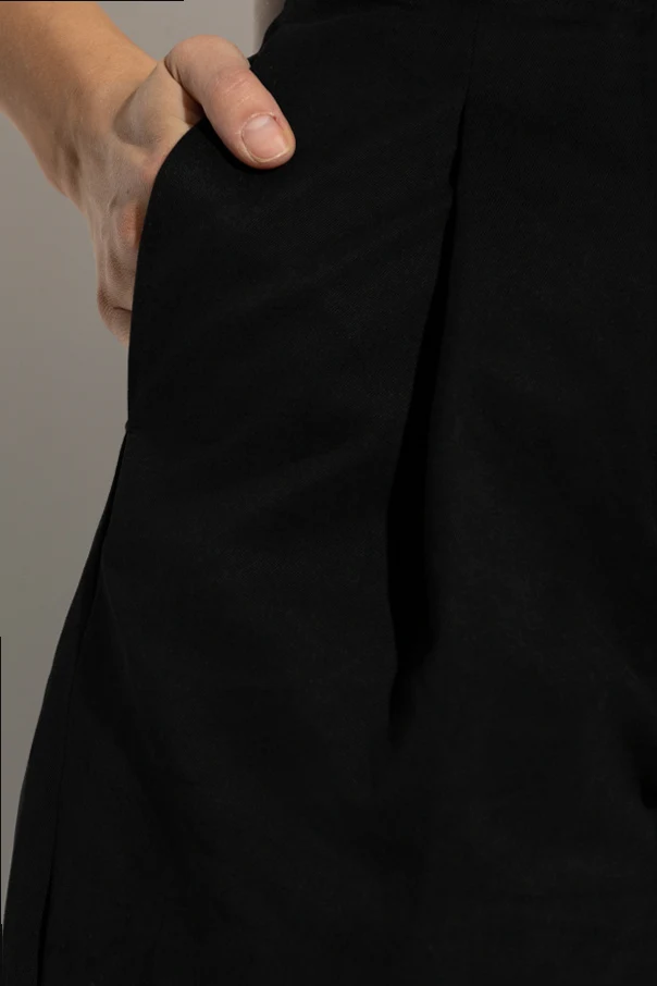 Gładka bawełniana tkanina o matowym wykończeniu emanuje klasycznym szykiem i zapewnia szlachetny wygląd, charakterystyczny dla ekskluzywnych kolekcji. Minimalistyczny, jednolity wzór dopełniają starannie wykonane, głębokie zakładki z przodu, gwarantujące wyjątkową objętość oraz wygodę, a boczne kieszenie w dyskretny sposób zwiększają funkcjonalność spodni.