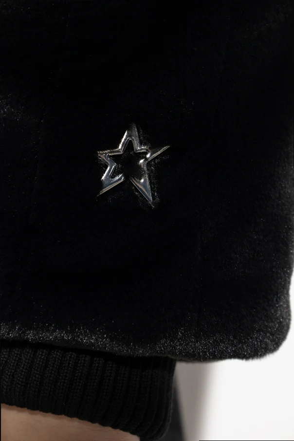 Czarny kolor dodaje kurtce wyjątkowej głębi, a obszerny kołnierz z tego samego futerkowego materiału harmonizuje z lekko bufistymi rękawami, zakończonymi prążkowanymi ściągaczami. Subtelny, metalowy detal w formie gwiazdy na lewym rękawie czyni ten model niezwykle rozpoznawalnym. Zapinana na zamek błyskawiczny, sygnowana przez markę Perfect Moment, która słynie z doskonałego połączenia stylu, komfortu i termicznych właściwości.