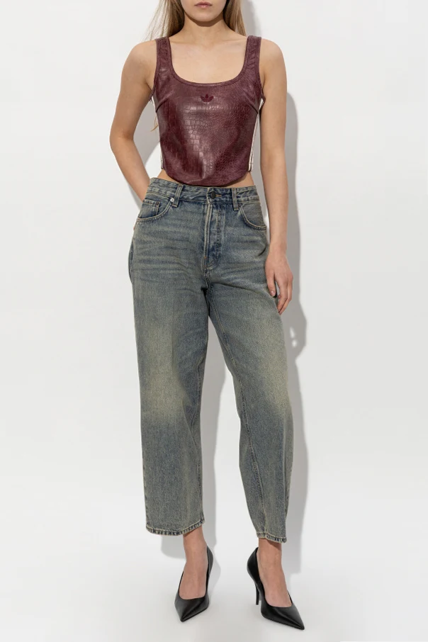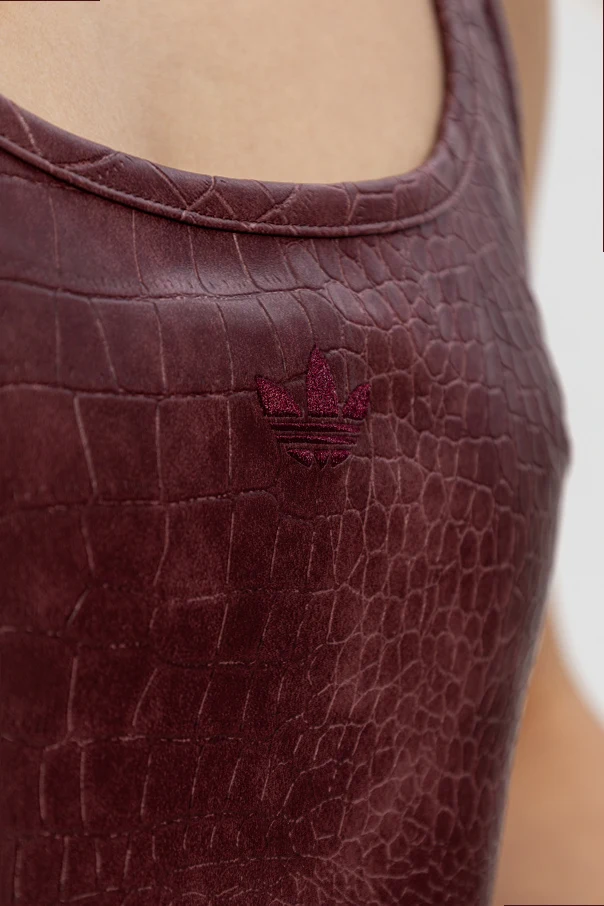 Odkryj niepowtarzalny top bez rękawów marki ADIDAS Originals, który zachwyca dopracowaną formą oraz kunsztownym wykonaniem. Prezentowany model o dopasowanym kroju doskonale podkreśla sylwetkę, harmonijnie łącząc szerokie ramiączka z lekko zaokrąglonym dekoltem. Unikatowe tłoczenie, imitujące fakturę skóry krokodyla, subtelnie podkreśla ekskluzywny charakter topu, czyniąc go wyjątkowym wyborem dla koneserek wyszukanej mody.