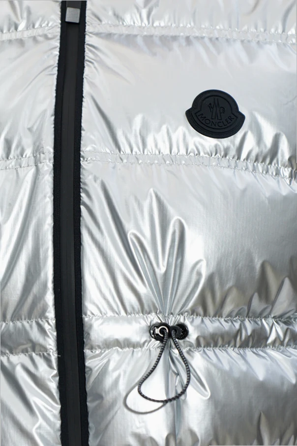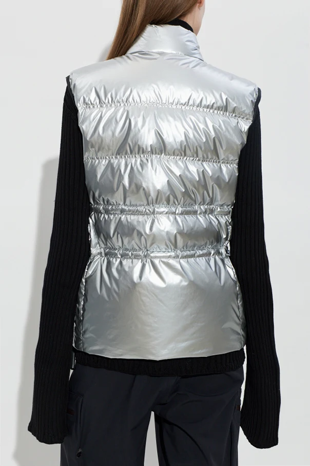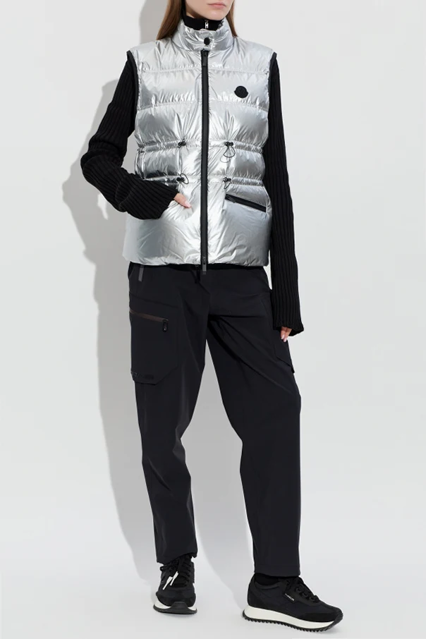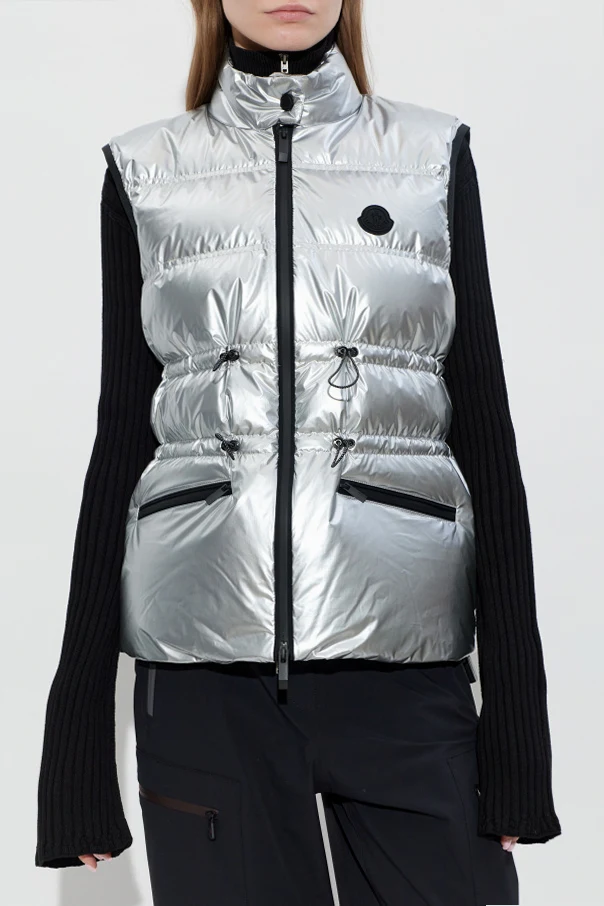 Puchowa kamizelka Pin marki Moncler to wyrafinowany przykład harmonii sportowego szyku i codziennej elegancji. Krótki, prosty fason z podkreśloną talią dzięki regulacji sznurkiem subtelnie komponuje się z lśniącym, srebrnym materiałem. Wysokiej klasy tkanina techniczna zachwyca metalicznym połyskiem, a wypełnienie z puchu i pierza zapewnia niezwykłe ciepło i lekkość.