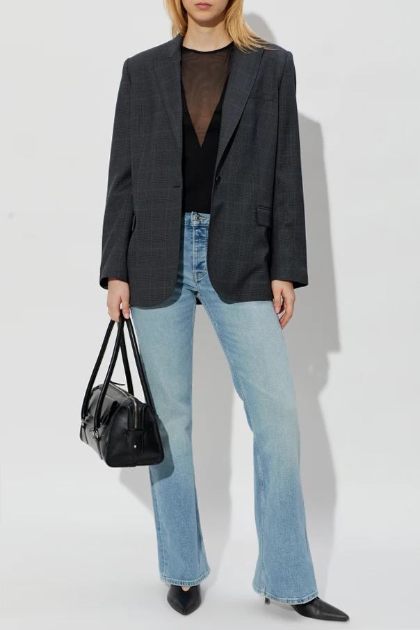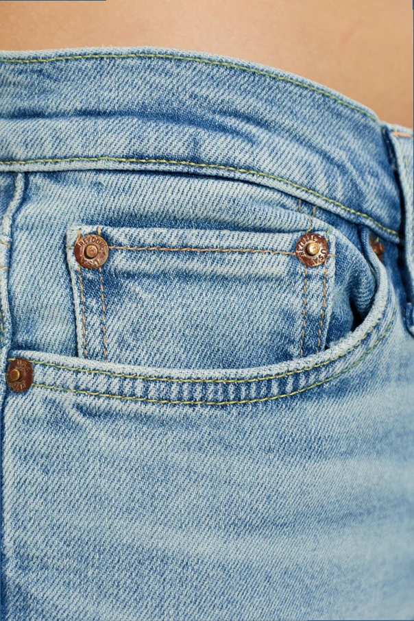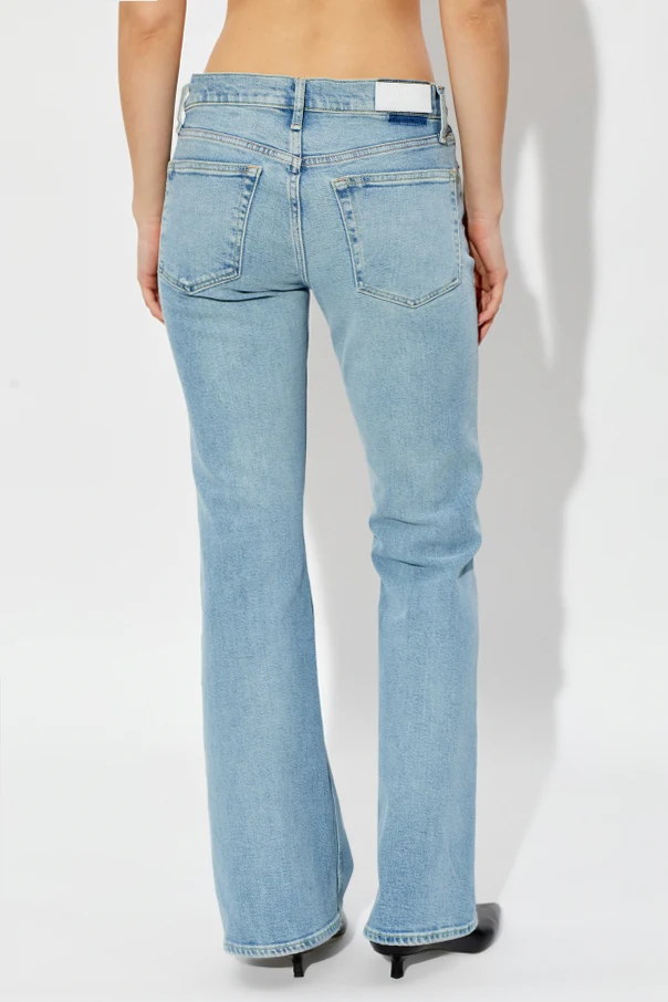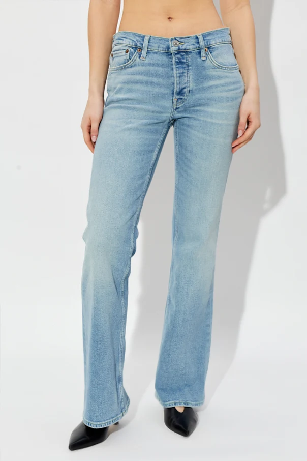 Jeansy z rozszerzanymi nogawkami autorstwa RE/DONE to wyrafinowana synteza klasyki i subtelnej nowoczesności. Uszyte z delikatnie sprężystego, szlachetnego denimu w jednolitym, niebieskim odcieniu, olśniewają wysmakowanymi cieniowaniami oraz przetarciami o zmysłowo vintage’owym wyrazie. Ich fason typu bootcut – dopasowany w udach, łagodnie rozszerzający się od kolan – eksponuje sylwetkę z naturalną lekkością i harmonią.