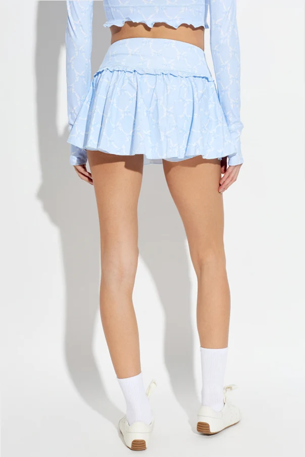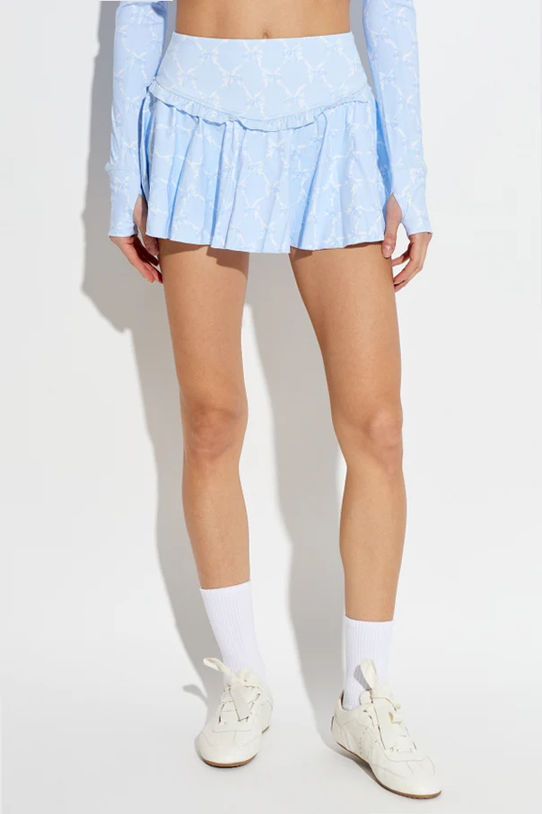 Spódnico-szorty treningowe „Vanina” to propozycja dla kobiet ceniących połączenie wyrafinowanego stylu z maksymalną swobodą ruchów. Subtelny jasnoniebieski kolor, uszlachetniony wdzięcznym deseniem białych kokardek, wnosi świeżość i lekkość do codziennej aktywności. Miniaturowa forma spódniczki rozkloszowanej została wzbogacona funkcjonalnymi spodenkami wszytymi pod spodem, zapewniając komfort oraz swobodę nawet podczas najbardziej wymagających ćwiczeń.