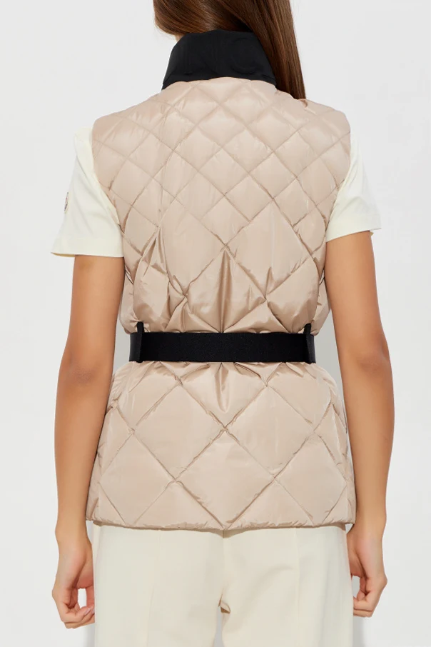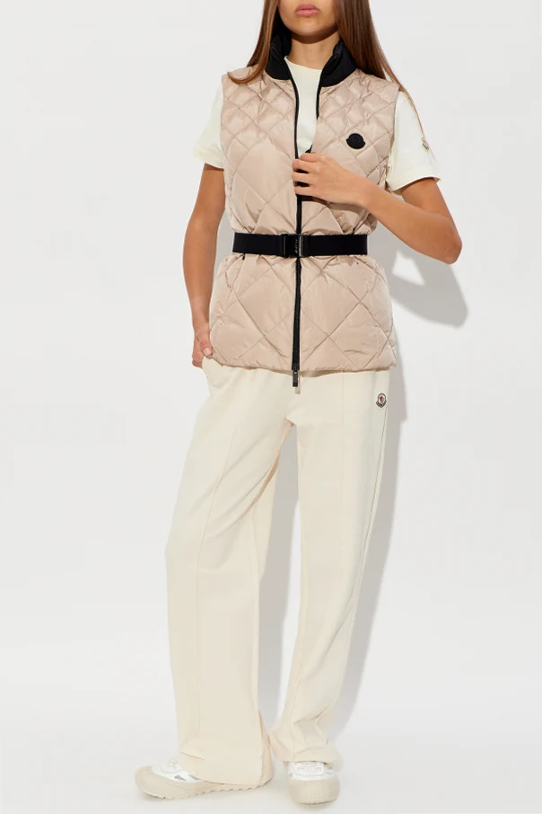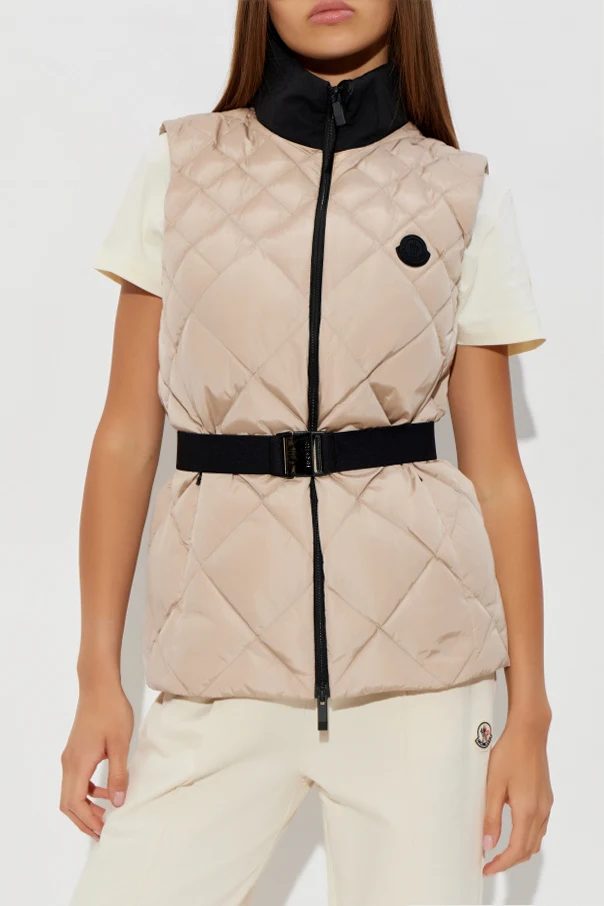 Czarny, wysoki kołnierz oraz kontrastowa lamówka zamka błyskawicznego uwydatniają ekskluzywność projektu. Widoczne, okrągłe, czarne logo projektanta na piersi podkreśla prestiż marki Moncler, słynącej z innowacyjnych wykończeń i najlepszych materiałów – zarówno zewnętrznych, jak i puchowego wypełnienia. Kamizelka sięga bioder, gwarantując uniwersalność i komfort noszenia na co dzień.