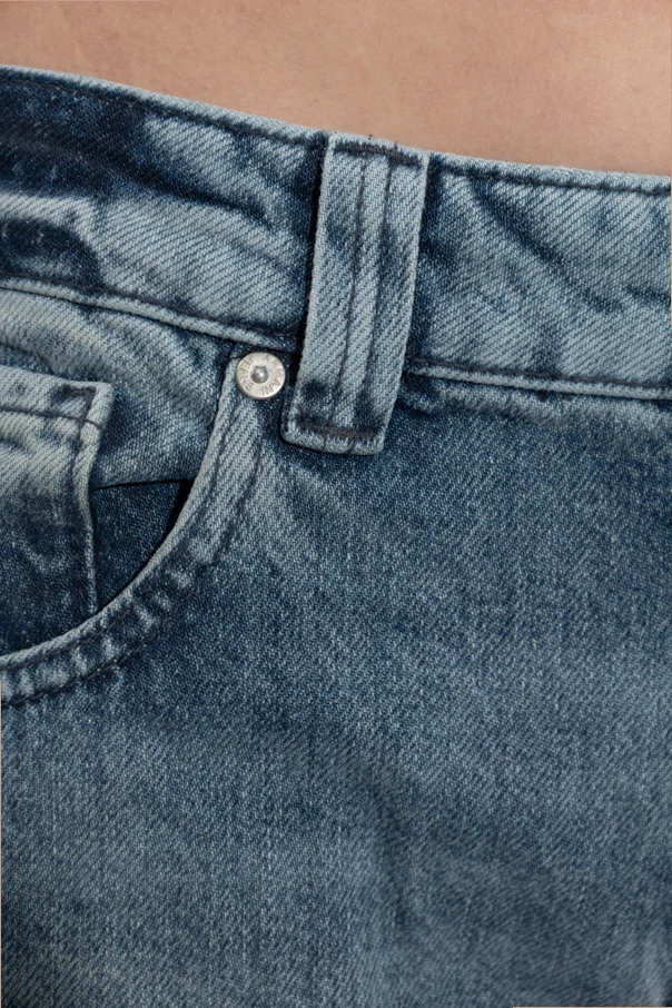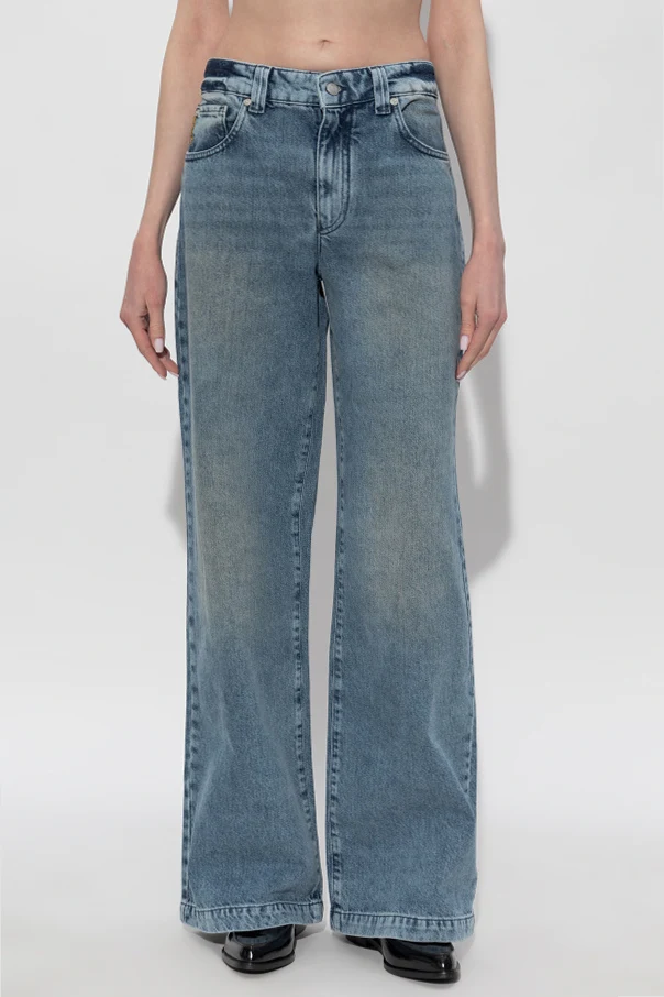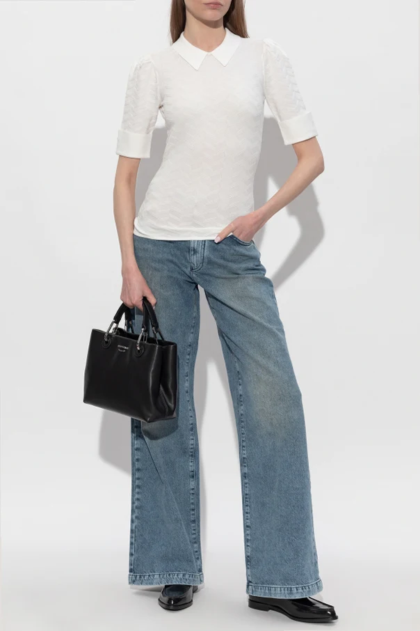 Jeansy z szerokimi nogawkami marki Emporio Armani to kwintesencja współczesnej elegancji z nutą ponadczasowego stylu vintage. Zostały wykonane z nieelastycznego, sztywnego denimu z najwyższej jakości bawełny, przez co urzekają swą autentycznością oraz nienaganną strukturą materiału. Niebieski odcień, wzbogacony subtelnym przecieranym efektem na udach i kolanach, doskonale współgra z kontrastowymi, jasnoniebieskimi szwami, tworząc harmonijną kompozycję detali. Regularny krój oraz szerokie, proste nogawki podkreślają swobodę ruchu, a podwyższony stan nadaje całości szlachetnego wyrazu. Dwie wyraźnie zarysowane przednie kieszenie dopełniają perfekcyjnej harmonii projektu.