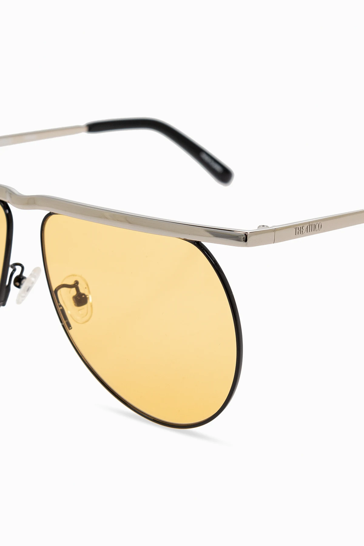Odkryj wyjątkowy model okularów przeciwsłonecznych „Mina” z ekskluzywnej kolekcji The Attico. Charakteryzują się niepowtarzalnym kształtem aviator , który dzięki dużym, żółtym soczewkom oferuje ochronę przed promieniowaniem UV, a także stylowy, współczesny wygląd.