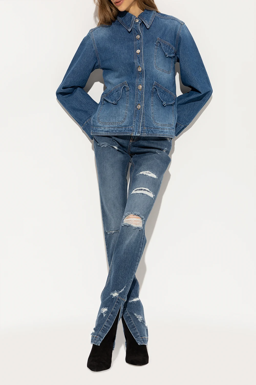 – Brązowe zamszowe botki z obcasem kubańskim i kowbojskim przeszyciem