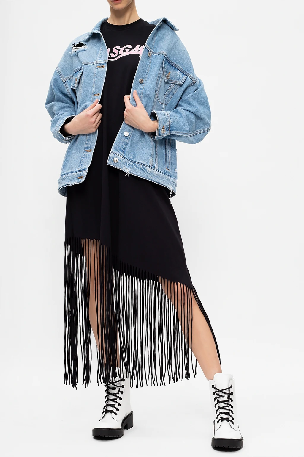 ASOS DESIGN – Zdobiona suknia ślubna maxi z dekoltem karo i frędzlami w kolorze kości słoniowej $429.00