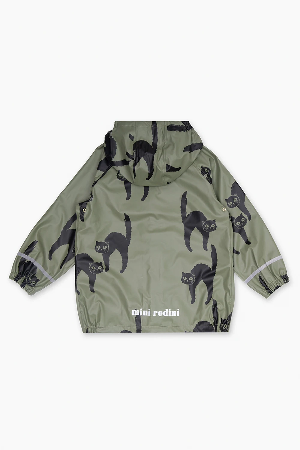 Zielona kurtka Mini Rodini. Zapinana na zamek oraz zatrzaski. Ozdobiona nadrukowanym wzorem z motywem zwierzęcym. Odpinany kaptur. Długie rękawy.