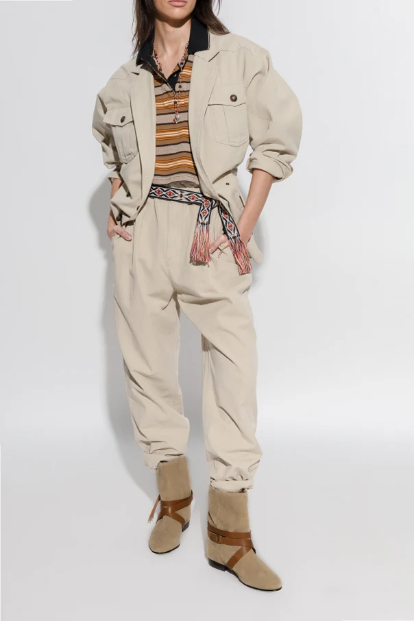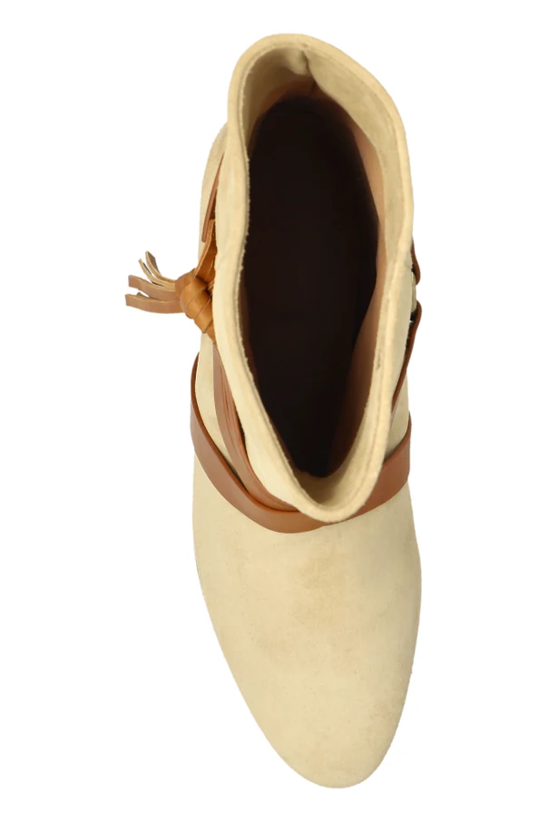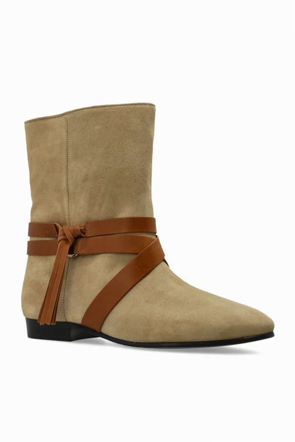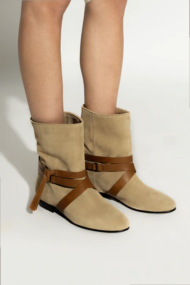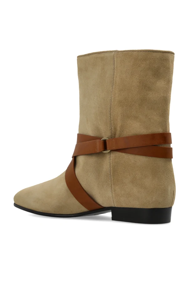 Zamszowe botki „Rejen” autorstwa Isabel Marant to kwintesencja ponadczasowej klasy i wyrafinowania. Harmonia klasycznego fasonu, zaokrąglonego noska i średniej wysokości cholewki w odcieniu beżowym zaskakuje subtelną elegancją, która naturalnie podkreśla charakter każdej stylizacji.