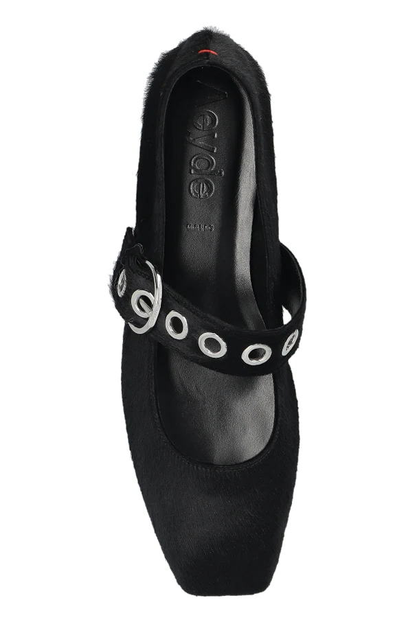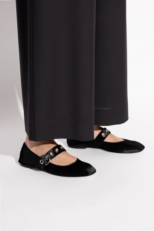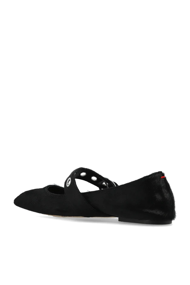 Baleriny „Uma” projektu Aeyde urzekają wyrafinowaną sylwetką oraz niepowtarzalnym wdziękiem. Smukły fason z lekko wydłużonym, kwadratowym noskiem podkreślony został zabudowanym zapiętkiem, zapewniającym idealne dopasowanie do stopy. Delikatnie połyskująca powierzchnia warstwy wierzchniej z włosia kuca harmonizuje z głęboką czernią wnętrza i wkładki, wyściełanych najwyższej jakości skórą, otulając stopę luksusowym komfortem.