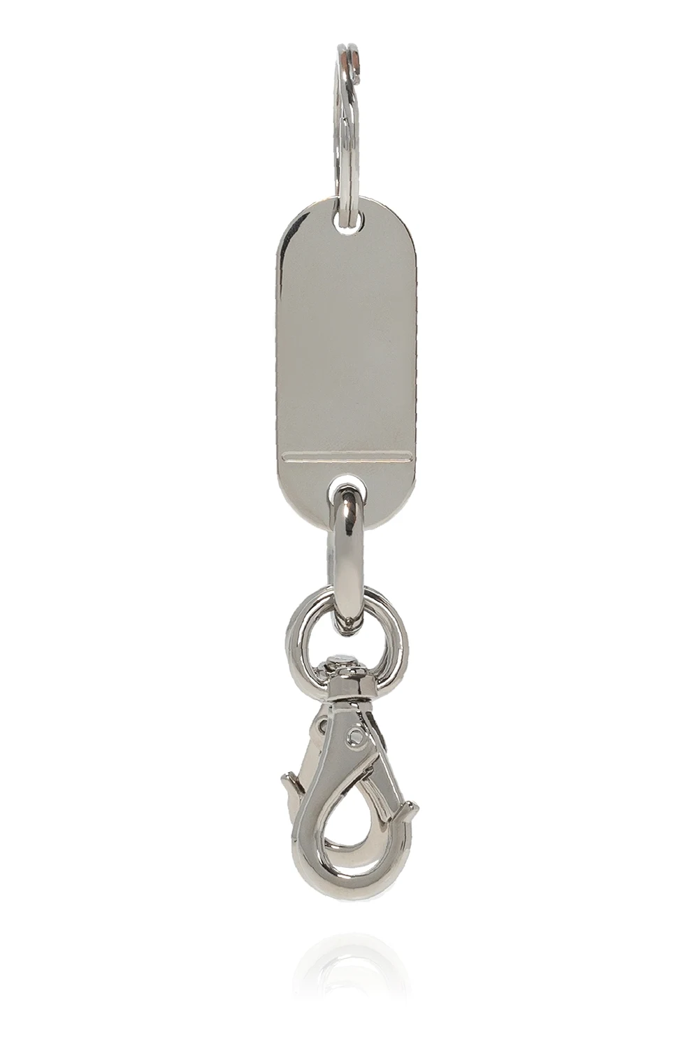 Brelok w kolorze srebrnym MM6 Maison Margiela. Zawieszka z wytłoczonym logo. Trzy karabińczyki.