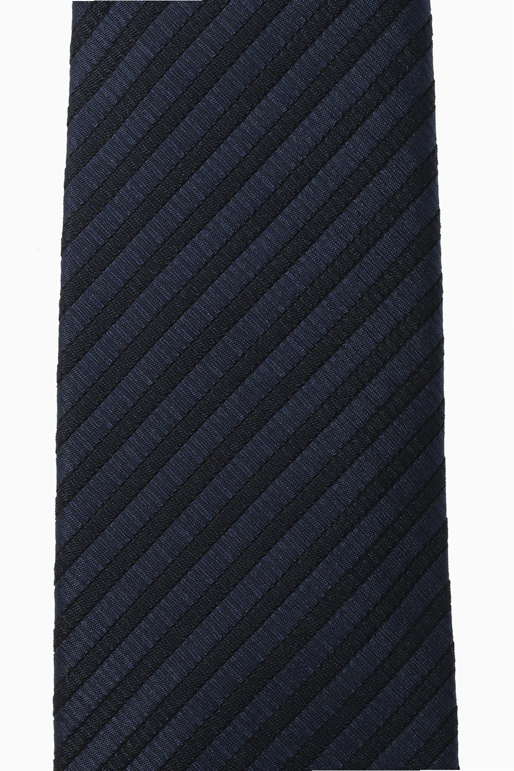 Granatowo-czarny krawat Giorgio Armani. Wykonany z jedwabiu. Ozdobiony wzorem w pasy.