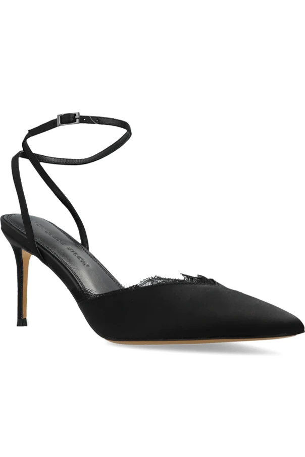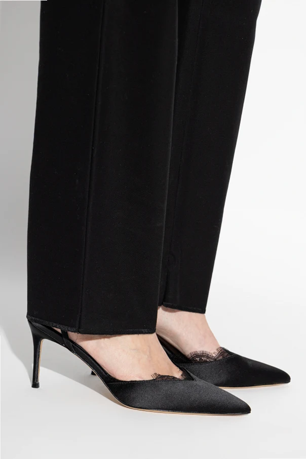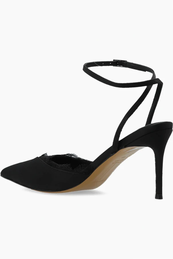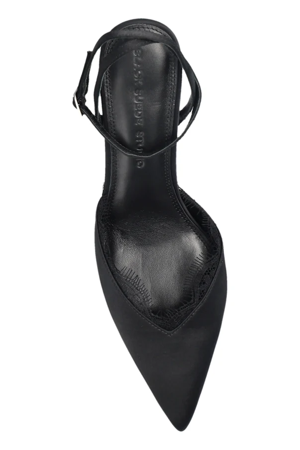 Buty na obcasie ‘Lace80’ z ekskluzywnej kolekcji BLACK SUEDE STUDIO olśniewają precyzją wykonania i wyrafinowanym pięknem. Klasyczna szpilka z wydłużonym, szpiczastym noskiem subtelnie wysmukla stopę oraz podkreśla wysoki, luksusowy charakter produktu. Model w kolorze czarnym oferuje odsłoniętą piętę i ponadczasowy fason „slingback”, wyposażony w cienki pasek z delikatną sprzączką, który lekko otula kostkę, zapewniając komfort i elegancję.