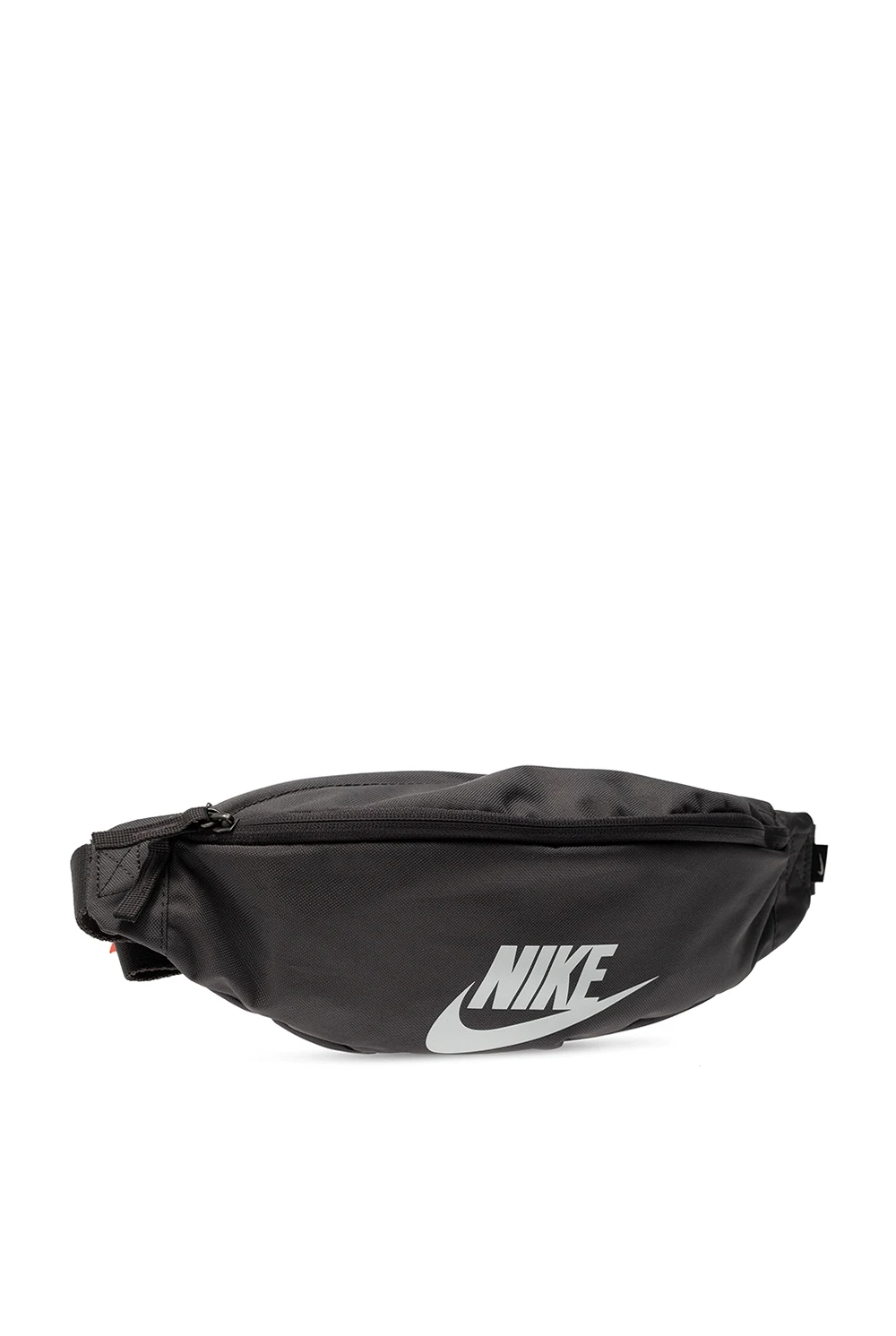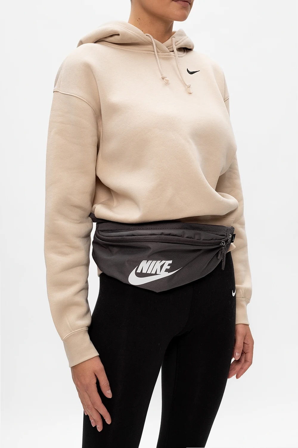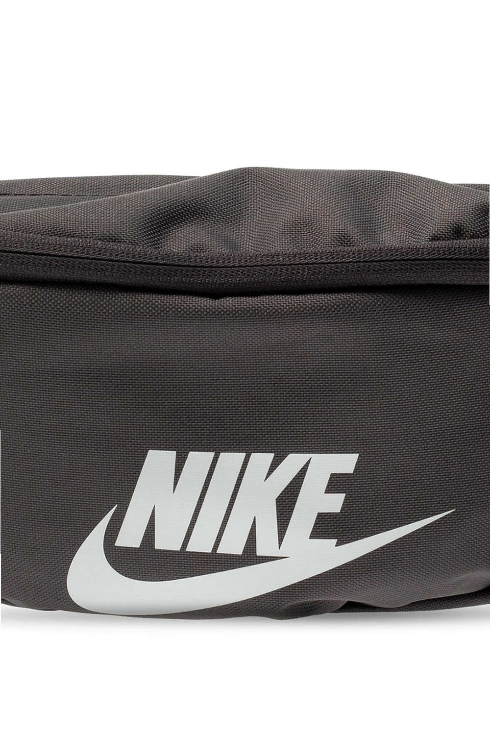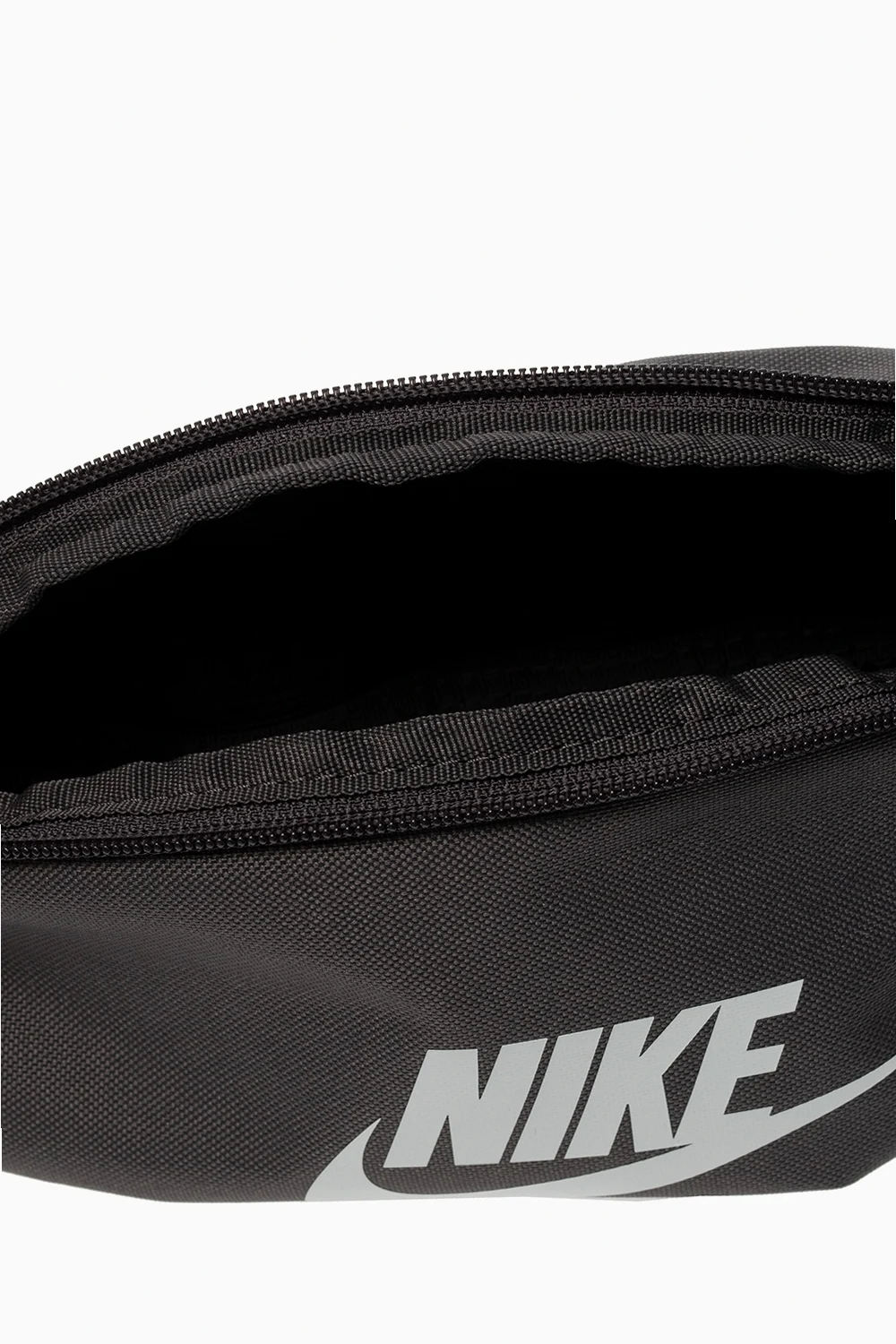 Ciemnoszara torba na pas Nike. Zamykana na zamek. Z przodu ozdobiona nadrukowanym logo w kolorze białym. Z tyłu kieszeń zamykana na zamek. Regulowany pas z klamrą. Wewnątrz komora oraz kieszeń zamykana na zamek.
