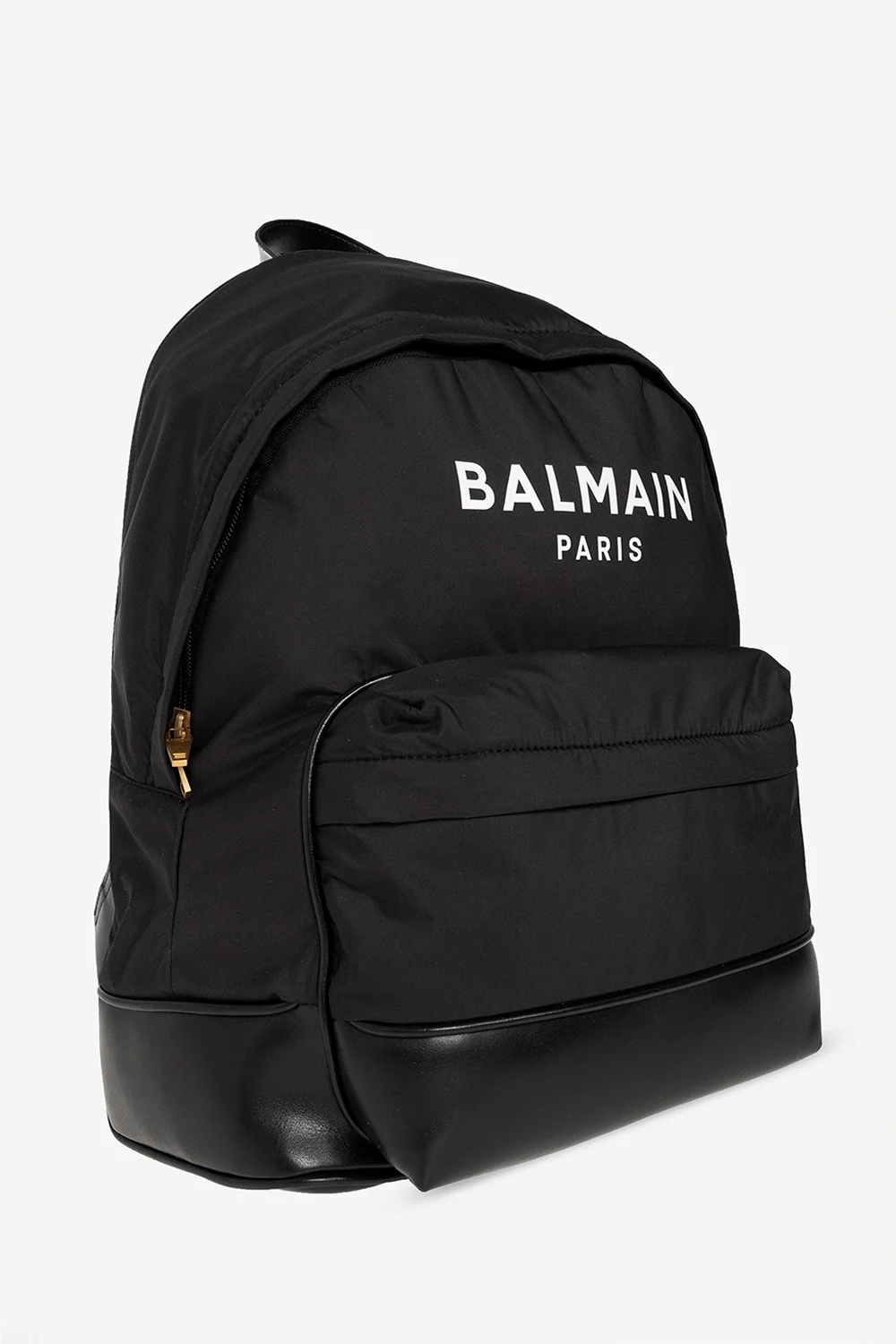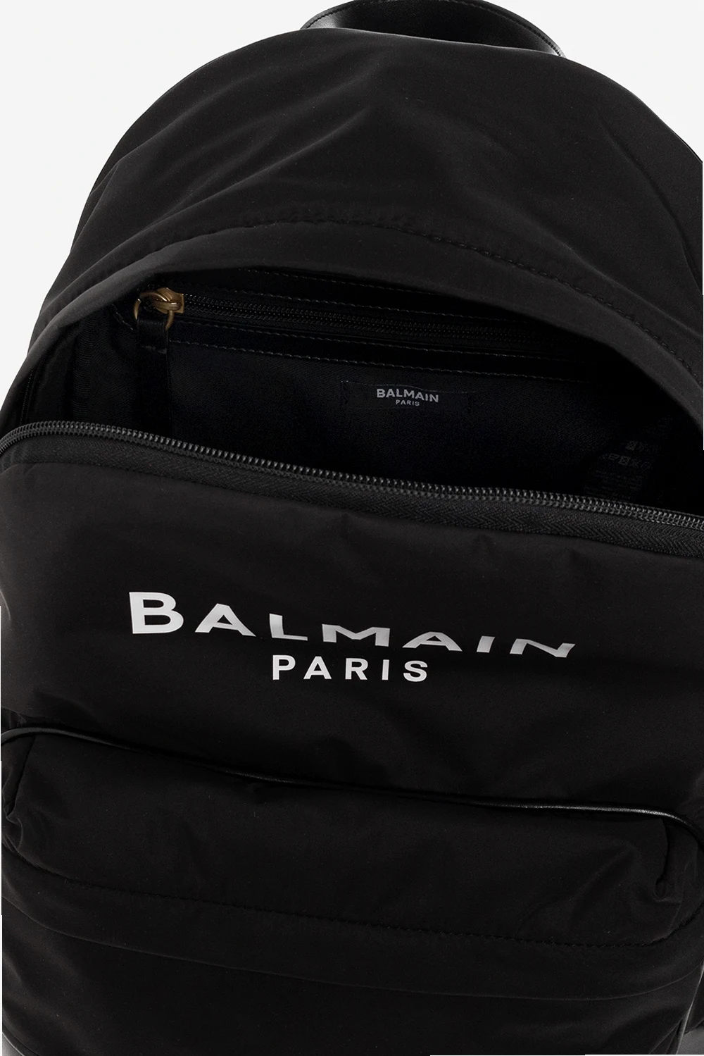 Czarny plecak Balmain Kids. Zapinany na zamek. Ozdobiony wzorem z logo w kolorze białym. Z przodu kieszeń zamykana na zamek. Półokrągła rączka. Szelki z możliwością regulacji długości. Wewnątrz komora. Metalowe wykończenie w kolorze złotym.