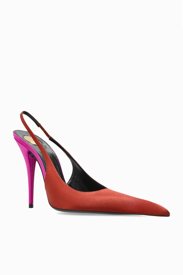 Buty na obcasie ‘Deroche’ to urzekająca propozycja stworzona przez maison Saint Laurent, symbolizująca ponadczasową elegancję i wyrafinowany francuski styl. Smukły, kobiecy fason klasycznych szpilek typu slingback harmonizuje z wyraźnie wydłużonym, szpiczastym noskiem oraz subtelnym, cienkim paskiem podtrzymującym piętę – detale te budują sylwetkę o nieprzeciętnej delikatności.