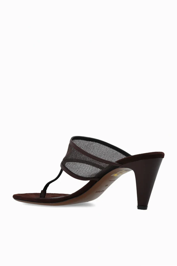 Klapki na obcasie „Vena” to esencja wyrafinowanego minimalizmu, stworzona z myślą o wymagających miłośniczkach elegancji. Wysublimowana bryła mule, z odkrytymi palcami oraz subtelną ekspozycją pięty, podkreślona została dwoma starannie rozmieszczonymi pasami – szerokim z brązowej, matowej skóry oraz delikatnym paskiem między palcami z tekstylnym prześwitem, który nadaje sylwetce obuwia lekkość i nowoczesny charakter.